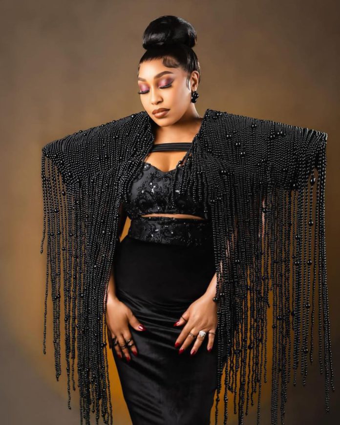 She shared alluring photos which saw her looking elegant in a black ensemble with beaded exaggerated sleeves.