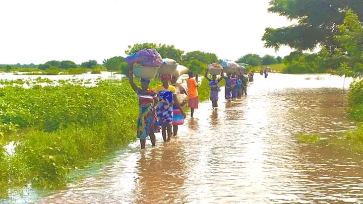 The flood has taken over everything that’s to say people’s crops and making it difficult for people to cross to communities around. Students aren’t able to go to school again, business are stoped but in the pictures, we could see ladies from Togo crossing in the water to Saboba for market.